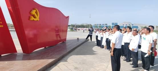 大家一同参观图木舒克市唐王城屯垦文化体验中心,回顾兵团建设发展的宝贵历史和兵团人波澜壮阔的奋斗历程。在布满历史足迹的展览长廊中回溯兵团和三师图木舒克市屯垦历史,体悟一代代中国共产党人筚路蓝缕的奋斗历程和立足为党的高尚品格,体会一代代兵团人践行兵团精神、胡杨精神和老兵精神以及推动新疆发展的丰功伟绩。全体党员还在鲜红的党旗下重温入党誓词。
